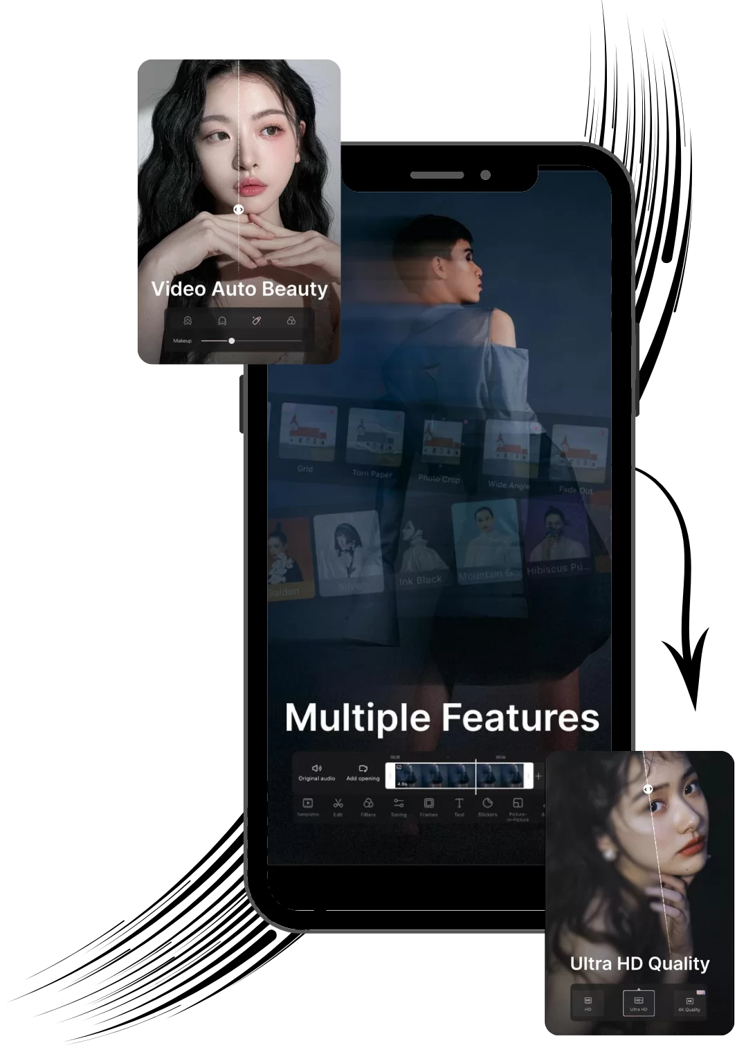 Enjoy AI Retouching, 4K Export, NO Watermark, Ad-Free Editing.