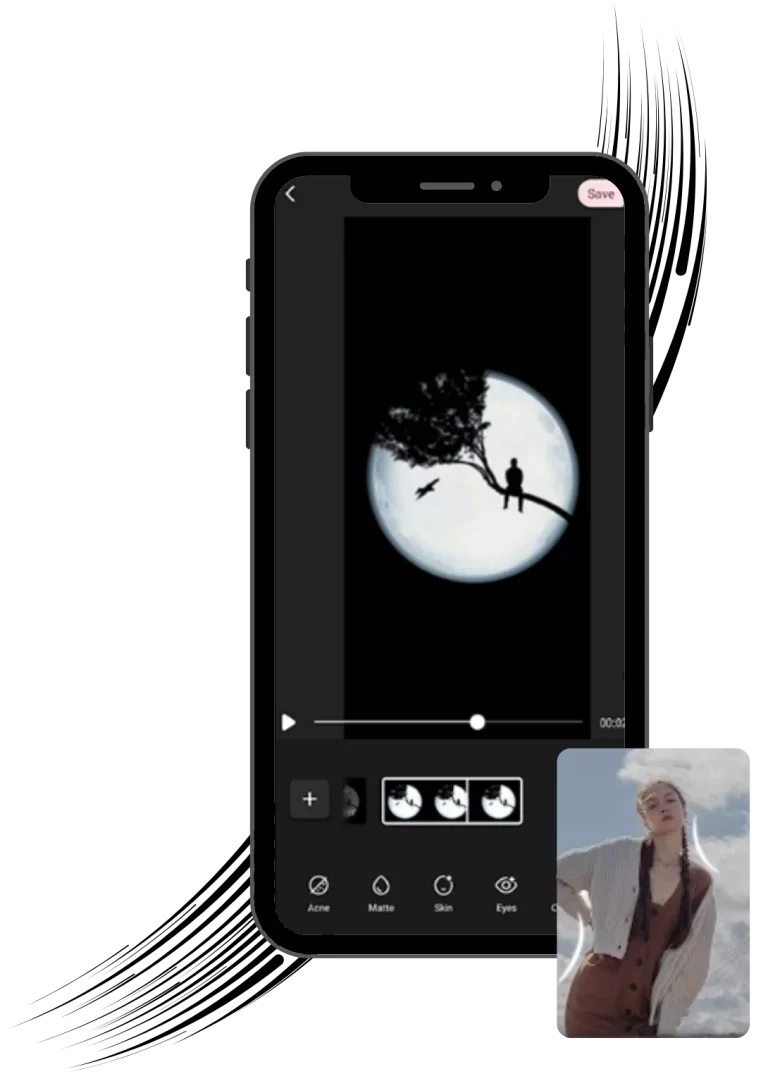 - Camera Tracking: Apply text, stickers, or effects that follow a moving person or object in your shot. The app makes sure your added element stays perfectly locked onto your subject as they move across the screen.
